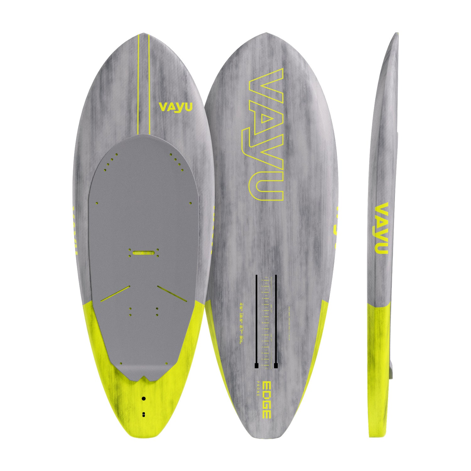 “With the Edge Prone we wanted a board that lifts instantly, feels balanced in the pocket, and stays smooth through fast directional changes. The wider nose helps you get into waves earlier and pop up with confidence, while the narrower tail and refined rail line let you carve deep without catching. The recessed deck increases control underfoot, especially when pumping or redirecting at speed.